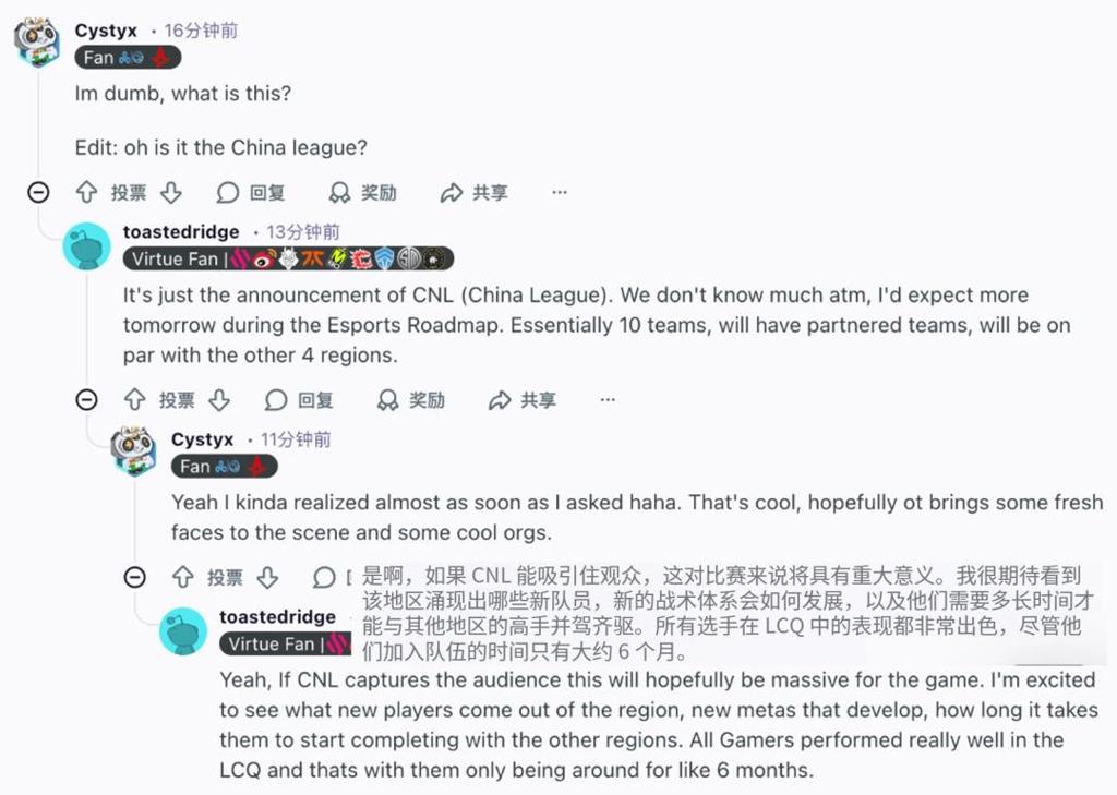 这些话一半是调侃,一半是真心。海外玩家期待CN赛区能够搅动现有格局,带来更多顶尖力量之间的精彩对决。