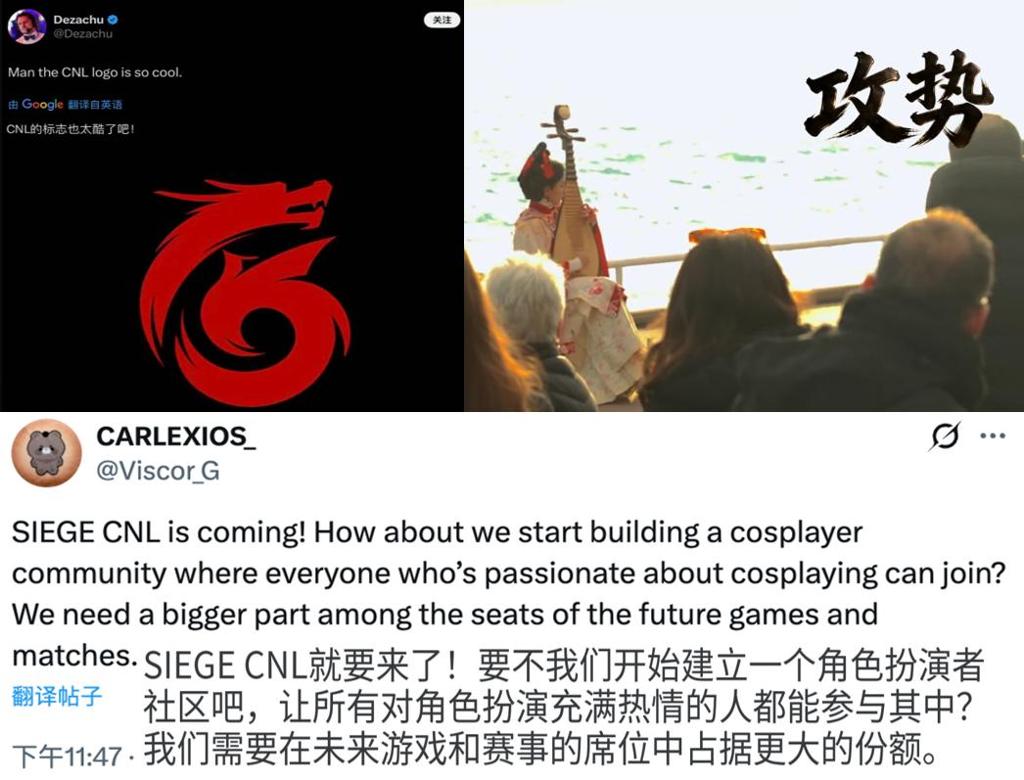 竞技和商业是硬指标,但文化层面的交融碰撞,也赋予了CNL更深层次的意义。 CNL全新Logo发布后,海外社区的讨论远超预期。这款以数字"6"为内核、融入龙凤图腾与水墨笔触的设计,被本届SI解说Dezachu由衷感叹"太酷了"。有玩家在评论区表示,想把这个Logo纹在身上,作为自己支持CN赛区的印记。 一段视频也在社区流传开来:巴黎街头,有一位国人小姐姐用琵琶演奏SI战歌作为献给CN赛区成立的贺礼,路人驻足询问"这是哪里的战歌"。东方文化与彩六的碰撞,在这一刻自然发生。 甚至有执行力强的海外玩家,已经开始思考趁着CNL的加入,邀请更多人一起“组建cosplay爱好者社区”。曾经,CN是这个社区里的孤岛。如今,全球玩家已经准备好迎接这位"新朋友",一起玩、一起战。